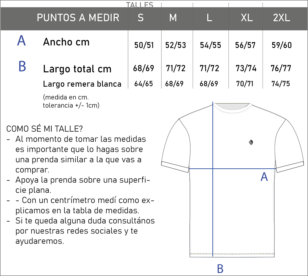 ATENCIÓN: LA REMERA BLANCA ES MAS CORTA QUE LAS OTRAS (ver tabla)